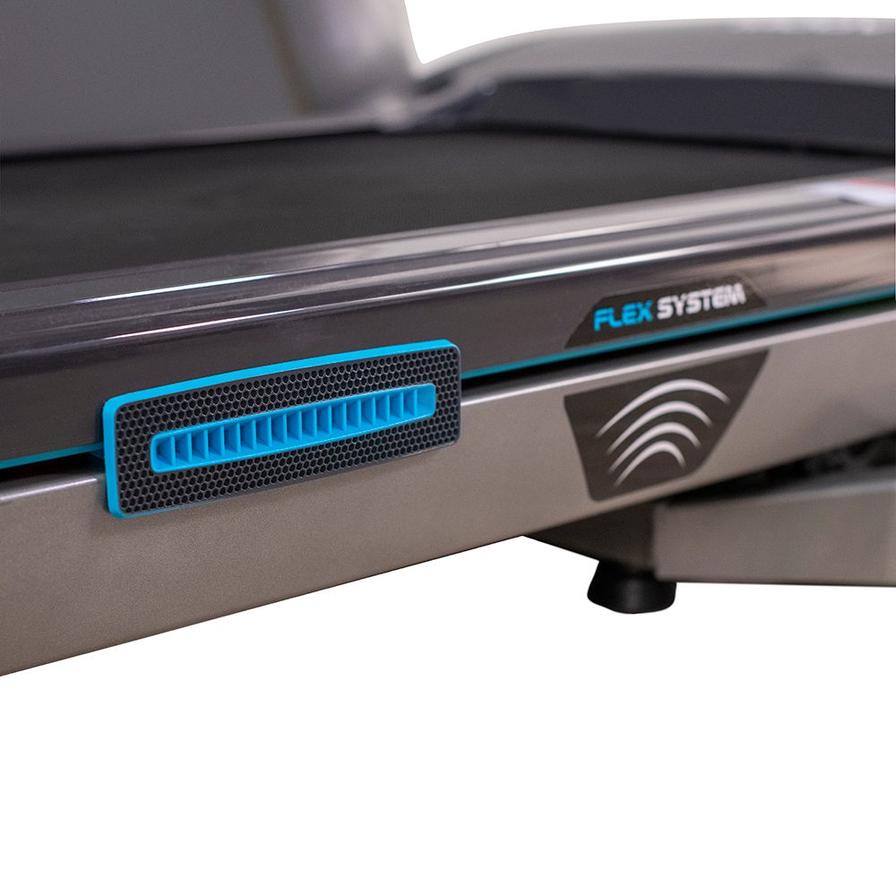 • 6 absorbeurs de choc de 15 cm x 2 cm en élastomère avec 3 duretés différentes. Le Flex System est un système unique qui offre une forte réduction d'impact de 15% pour les articulations et vous permet de développer votre endurance confortablement chez vous. -