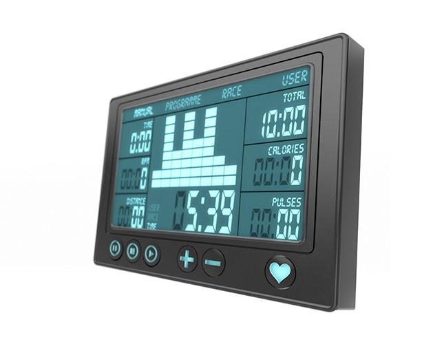 - POULS : indique la valeur du rythme cardiaque pendant l’exercice. Intervalle de pulsations cardiaques : 30-240 BPM (Battements Par Minute) / ceinture cardiaque en option